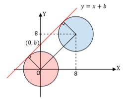 Titik (0, b) adalah titik potong garis singgung persekutuan luar lingkaran dan dengan sumbu-Y positif. Nilai b adalah ….