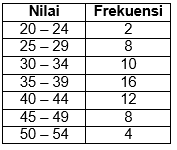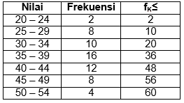 Median dari data yang disajikan pada tabel di atas adalah...
