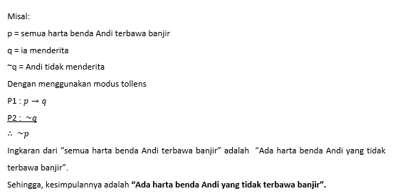 Premis 1: Jika semua harta benda Andi terbawa banjir, maka ia menderita.