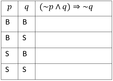 [UN 2011] Nilai kebenaran dari pernyataan majemuk yang dinyatakan dengan pada tabel berikut adalah …