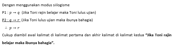 1. “Jika Toni rajin belajar maka Toni lulus ujian”.