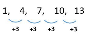 1, 4, 7, 10, ...