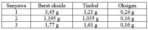 3,45 g oksida berwarna kuning mengandugn 3,21 g timbal