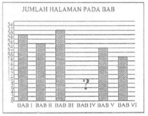 39. Buku matematika SMP/MTS kelas IX semester I terdiri dari 6 BAB yang semuanya berjumlah 170 halaman, dengan rincian: judul dan katalog=2 halaman, penjelasan buku=1 halaman, kata sambutan=1 halaman, kata pengantar=1 halaman, daftar isi=1 halaman, kunci jawaban=1 halaman, daftar simbol=1 halaman, glosarium=1 halaman, indeks=2 halaman, daftar pustaka=1 halaman, tes kemampuan=4 halaman, yang masing-masing BAB jumlah halamannya disajikan dalam diagram di bawah.