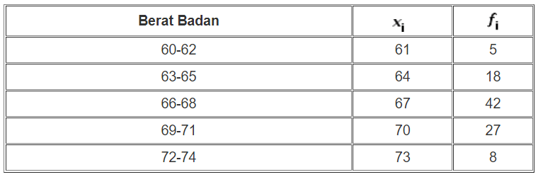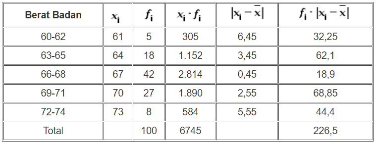 7. Tentukan simpangan rata-rata dari data berat badan berikut