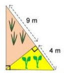 Pak Budi membagi tanahnya menjadi dua buah segitiga siku-siku. Bagian yang lebih luas akan ditanami padi sedangkan bagian yang lebih sempit akan ditanami sayuran. Tentukan luas masing-masig bagian tanah Pak Budi yang akan ditanami padi dan sayuran!