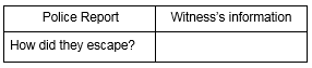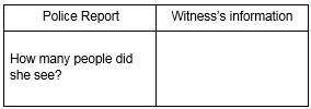 Read the police interview to a woman about a crime. Then, fill in the chart below with the information given by the woman.