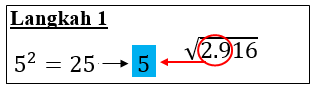 adalah 3.025 dan bilangan berpangkat yang akan kita tentukan akarnya adalah 2.916.