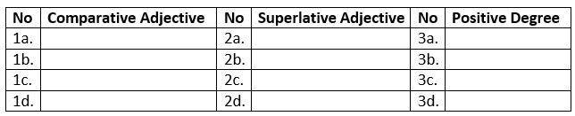 Read the conversation below then identify the comparative adjective, the superlative adjective, and the positive degree.