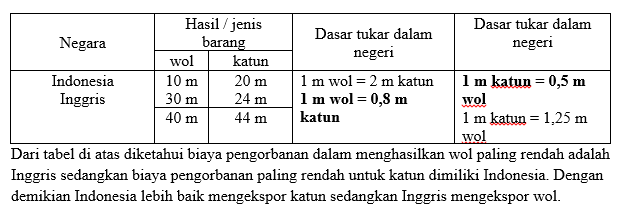 Indonesia spesial memproduksi wol dan Inggris spesial memproduksi kain katun