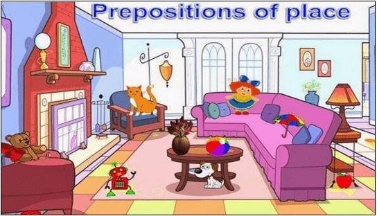 The doll is next to tha sofa