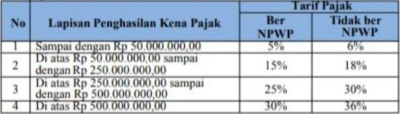 Tarif PTKP menurut PMK Nomor 101/PMK.010/2016 adalah sebagai berikut: