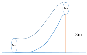 Air mengalir ke atas pada pipa seperti gambar di bawah dengan debit aliran sebesar 0,0016π m³/s.