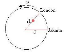 Akibat rotasi bumi, keadaan Hasan yang bermassa a dan berada di Jakarta, David yang bermassa a dan berada di London, akan sama dalam ….