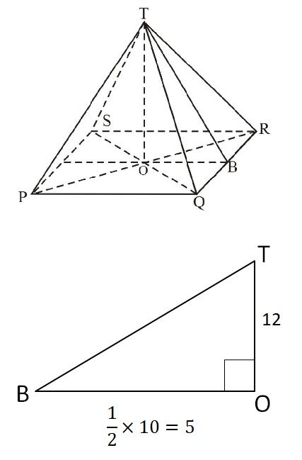 Alas limas berbentuk persegi dengan panjang sisi 10 cm. Jika tinggi limas 12 cm, berapakah luas seluruh permukaan limas?