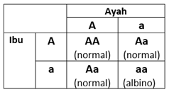 Albino merupakan kelainan genetik autosomal resesif. Sepasang suami istri yang memiliki pigmen kulit normal baru saja mengetahui bahwa ternyata mereka membawa gen albino. Jika mereka ingin memiliki 3 orang anak, maka kemungkinan mereka memiliki 3 orang anak dengan minimal dua anak mereka berfenotip normal adalah sebesar…
