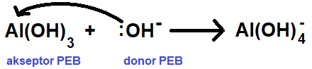Aluminium hidroksida dapat larut dalam basa akibat reaksi berikut.