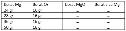 Dari hasil perhitungan massa pada data tersebut di atas lengkapilah tabel berikut!