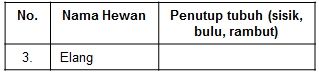 Berdasarkan gambar hewan-hewan di atas, isi tabel berikut ini!