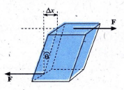 Tempelkan salah satu sisi yang luasnya A pada lantai dengan kukuh. Lalu, kerjakan gaya sebesar F ke kanan dengan titik pangkal gaya pada rusuk kanan atas. Tunjukkanlah bahwa perlakuan Anda terhadap kubus seperti ini, sama saja dengan perlakuan yang digambarkan berikut ini.