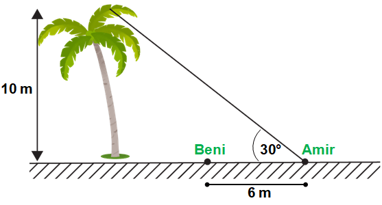 Amir berbaring memandang puncak sebuah pohon dengan sudut elevasi dan Beni berada tepat di depan Amir. Jika tinggi pohon tersebut , jarak Beni terhadap pohon tersebut adalah ....