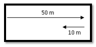 Andi berjalan ke timur sejauh 50 meter lalu berbalik arah ke barat sejauh 10 meter. Jarak dan perpindahan yang ditempuh Andi adalah ....