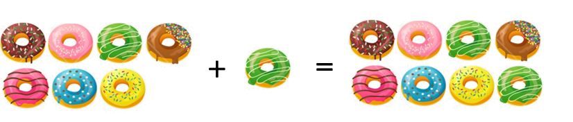 Andi memiliki 7 donat, lalu Ayu memberi Andi 1 donat, berapa semua donat Andi?