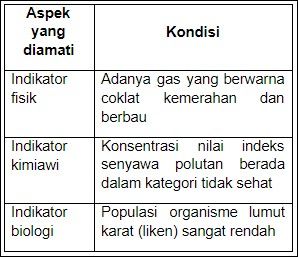 telah terjadi pencemaran udara yang ditunjukkan oleh sedikitnya populasi liken di daerah tersebut