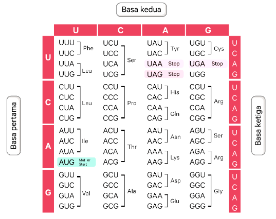 Gunakan tabel asam amino di bawah ini!