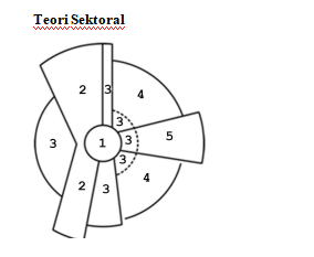 Angka 3 dan 5 pada gambar sesuai teori sektor adalah ...