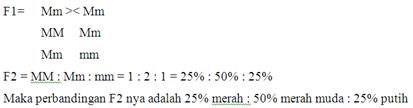 Antirrhinum majus galur murni berbunga merah (MM) disilangkan dengan galur murni berbunga putih (mm) menghasilkan F1 berbunga merah muda (Mm). Jika F1 nya dibiarkan mengadakan penyerbukan sendiri, maka perbandingan fenotip pada generasi F2 adalah….
