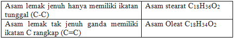 Apa yang dimaksud dengan asam lemak jenuh dan asam lemak tidak jenuh ganda? Berikan contohnya.