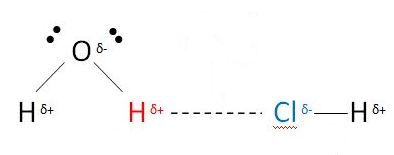 terdapat gaya tarik atom O dari air dengan atom Cl dari HCl
