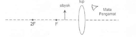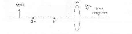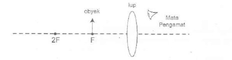 Apabila kita mengamati objek menggunakan lup dengan mata berakomodasi maksimum, maka posisi obyek yang benar adalah ...