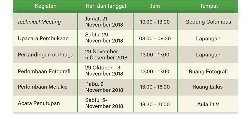 Tumang Cup II 2018 akan dilaksanakan dengan jadwal sebagai berikut.
