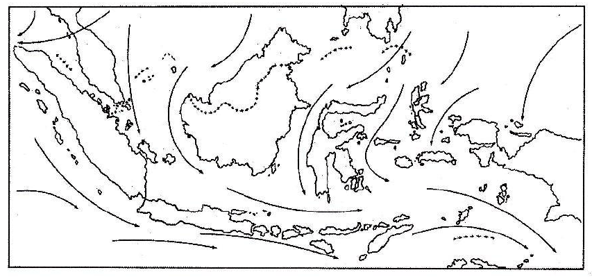 Arah angin pada peta yang berlangsung pada bulan Oktober sampai April, mengakibatkan musim kemarau di wilayah....