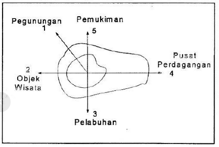 Arah pengembangan kota seperti pada gambar adalah ke arah nomor ....