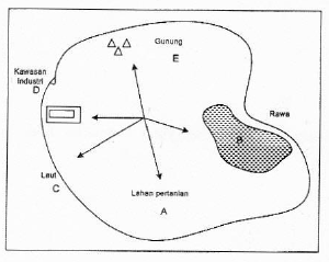 Arah pengembangan pengembangan pemukiman yang ideal sesuai pola keruangan seperti gambar adalah ke arah ...