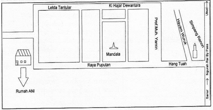 Arah perjalanan yang paling efektif menuju rumah ANI dari arah Sanur adalah jalan ....