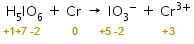 Jumlah unsur I dan Cr pada ruas kiri dan kanan adalah 1, maka biloks unsur I dan Cr dikalikan 1.