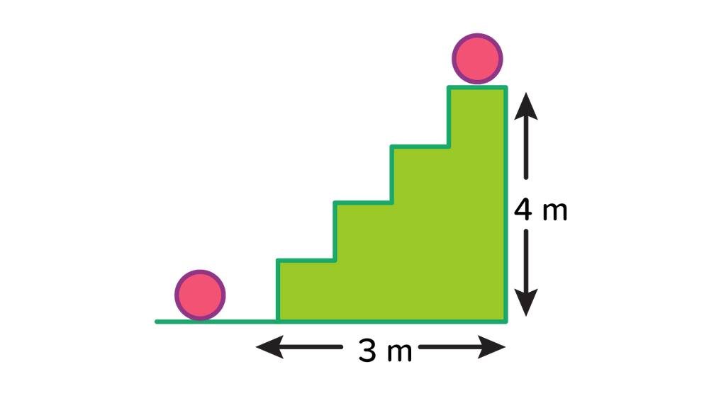 Atun memindahkan bola besi dari bawah ke atas dengan menaiki anak tangga, seperti terlihat pada gambar. Jika massa bola sebesar 2 kg, g = 10 m/s2, usaha yang dilakukan Atun sebesar ...