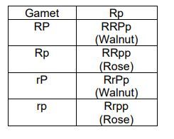 Ayam walnut (R_P_), rose (R_pp), biji (rrP_), bilah (rrpp). Perbandingan fenotipe persilangan ayam walnut heterozigot dengan ayam rose homozigot adalah ...
