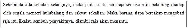 Siapapun yang mengobati raja di balairung akan diambil menantu di hadapan menteri hulubalang.