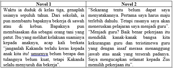 Persamaan nilai sosial yang terdapat pada dua kutipan novel di atas adalah….
