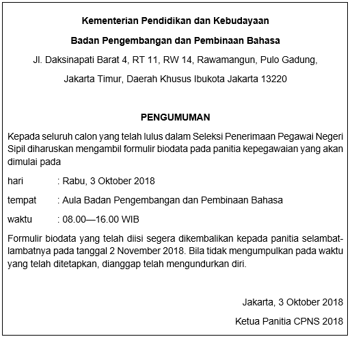 pengumuman tidak formal