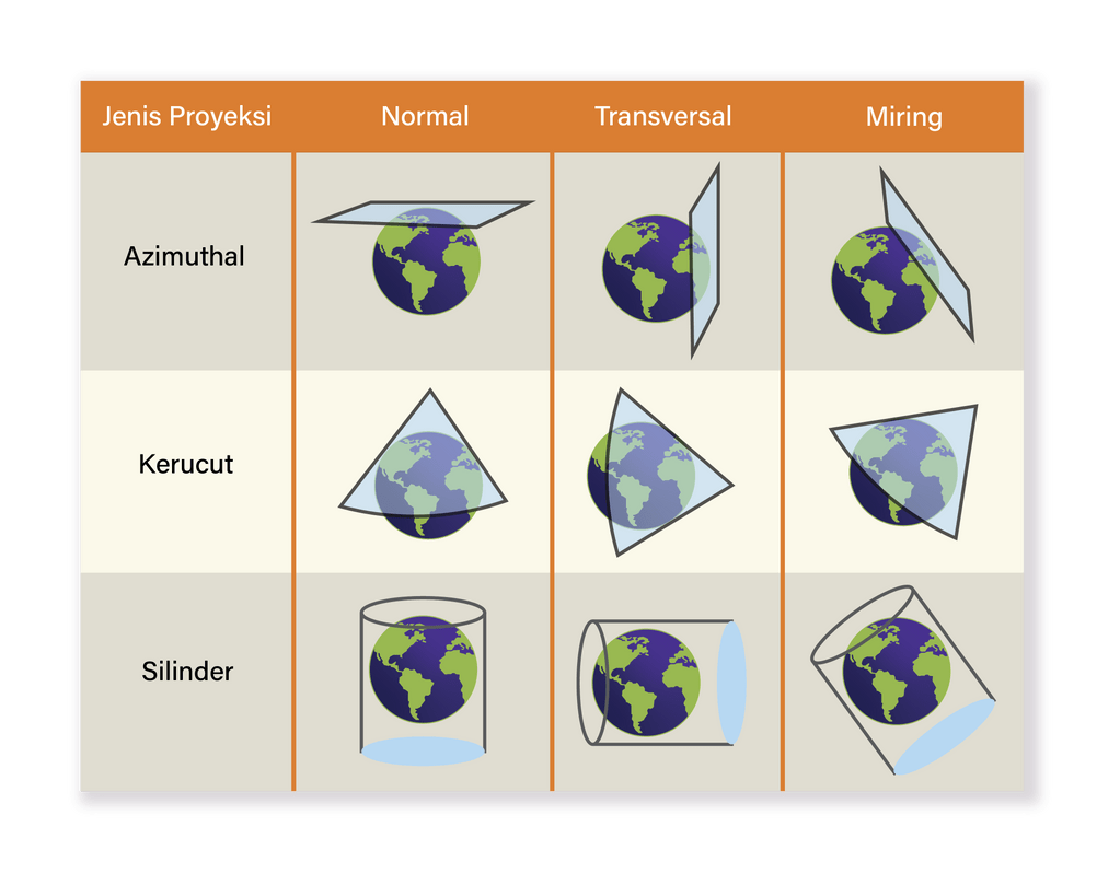 Bidang-bidang proyeksi peta yang digunakan dalam proses pemindahan globe ke bidang peta adalah bidang-bidang ....