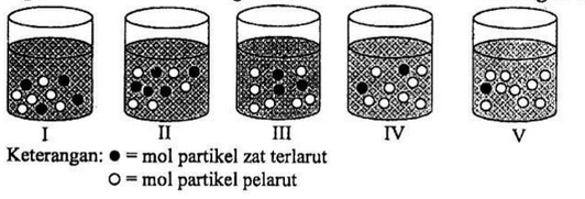 Bagan berikut ini adalah gambaran molekuler larutan dengan berbagai konsentrai.