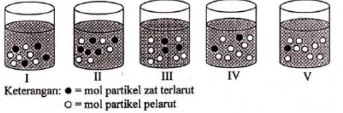 Bagan berikut ini adalah gambaran molekuler larutan dengan berbagai konsentrasi.