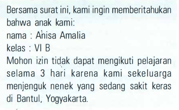 Bacalah penggalan surat berikut!