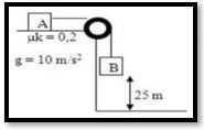Balok A yang massanya 2 kg dan balok B yang massanya 1 kg mula–mula diam, lalu bergerak ke bawah sehingga menyentuh lantai setelah selang waktu ….